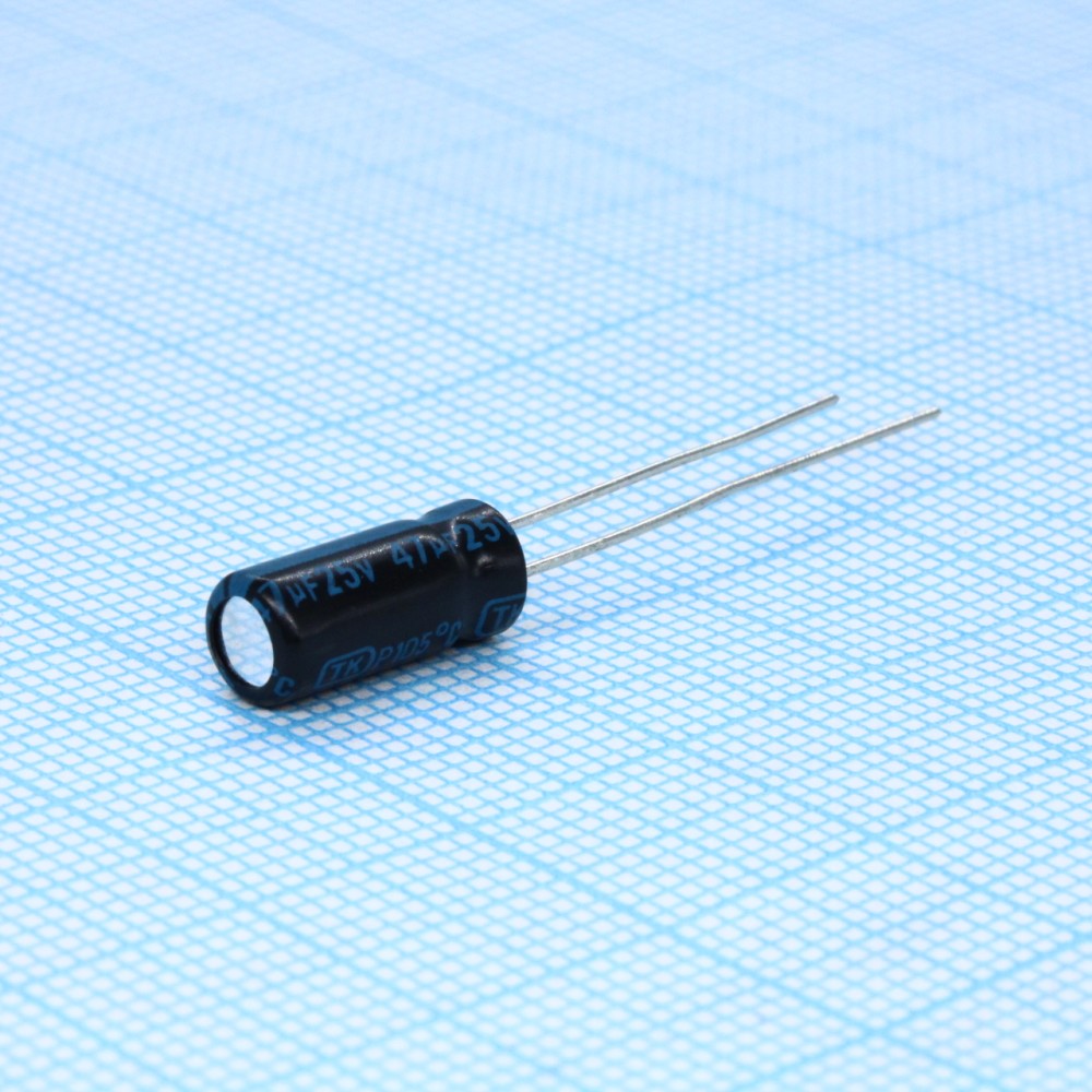 Конденсатор алюминиевый электролитический радиальный 47мкФ 25В ±20% 6.3*7 P:1.5мм 1000чв 105°C