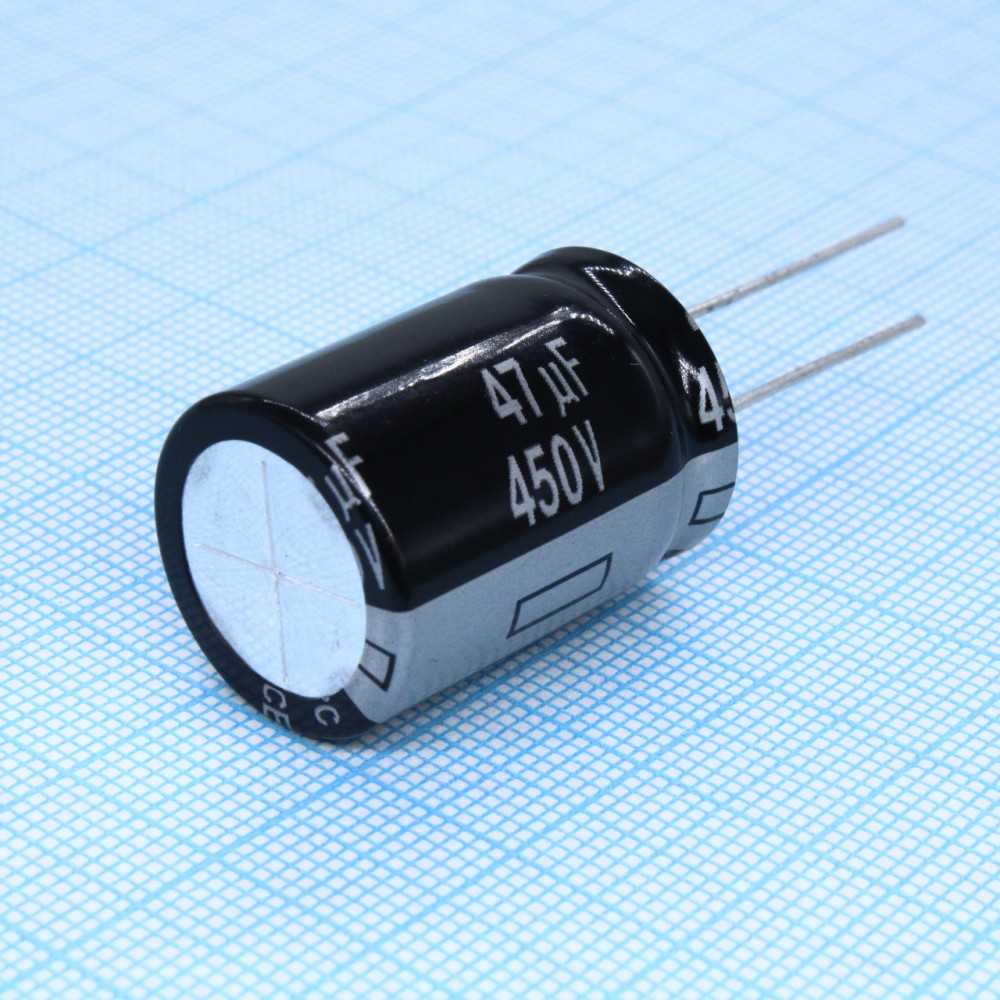 Конденсатор алюминиевый электролитический 47мкФ 450В ±20% (18х32мм) радиальный 7.5мм 340мА 5000часов 105°C россыпь