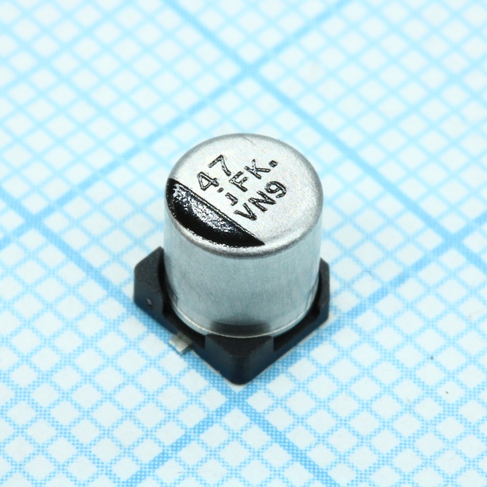 Конденсатор алюминиевый электролитический 47мкФ 6.3В ±20% (5 X 5.8мм) для поверхностного монтажа 160мА 2000час 105°С автомобильного применения лента на катушке