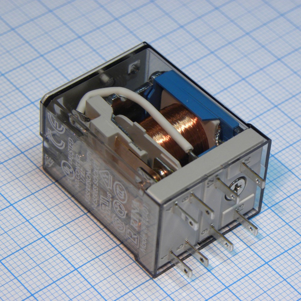 Доставка 55.32.9.024.0000 , Миниатюрное универсальное электромеханическое реле; монтаж в розетку; 2CO 10A; контакты AgNi; катушка 24В DC; степень защиты RTI; опции: нет