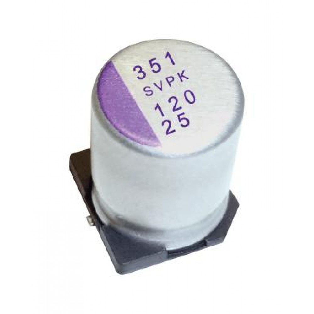 Доставка 50SVPK33M , Конденсатор алюминиевый полимерный 33мкФ 50В ±20% ( 8х6.9мм) для поверхностного монтажа 0.035Ом 850мА 1000час 125°С лента на катушке