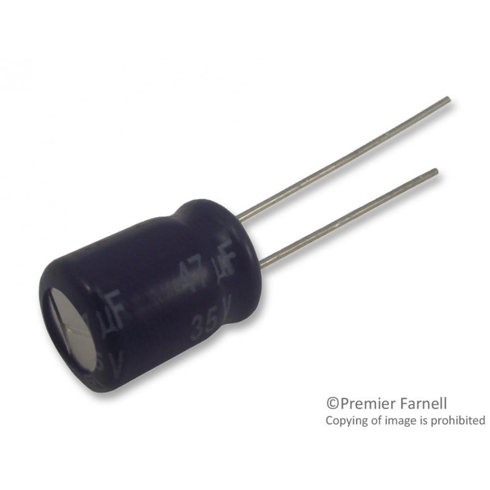 Конденсатор алюминиевый электролитический 47мкФ 35В 20% (8 X 11.5мм) радиальные выводы 3.5мм 120мА 2000час 85°С Россыпь