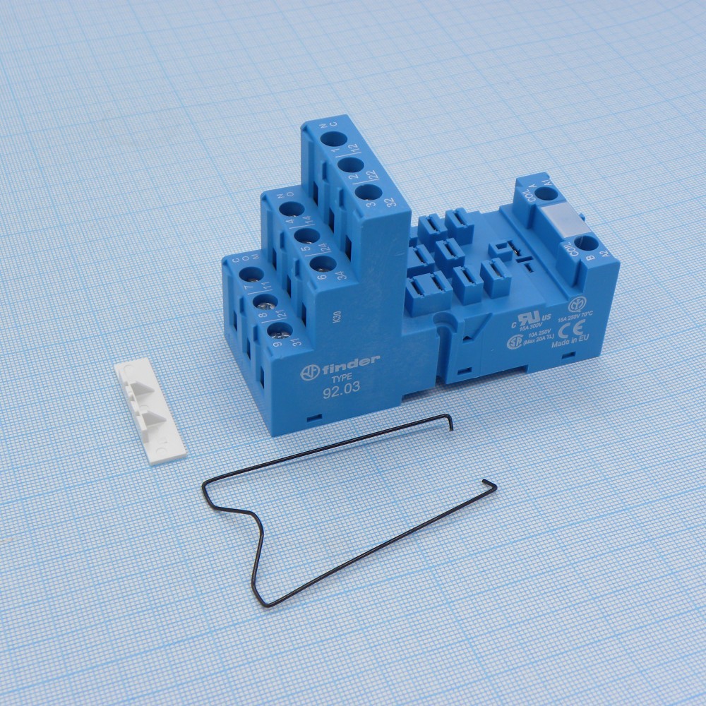 92.03SMA, Розетка с винтовыми клеммами (с зажимной клетью) для реле 62.31, 62.32, 62.33; применяются модули 86.00, 86.30, 99.02; в комплекте металлическая клипса 092.71; версия: синий цвет