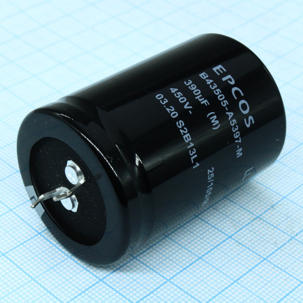 B43505A5397M000, Конденсатор алюминиевый электролитический 390мкФ 450В ±20% (35 X 50мм) защелкиваемые выводы 10мм 0.35Ом 2000мА 5000час 105°С россыпь