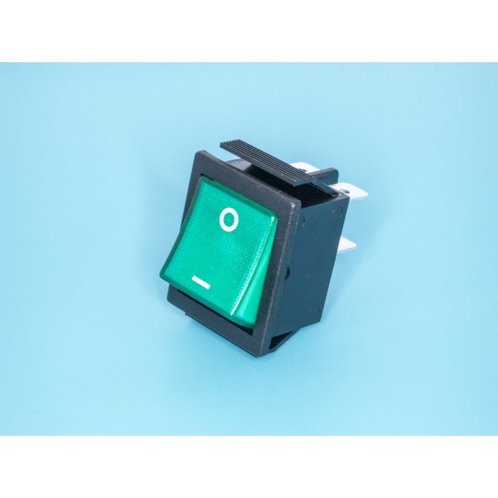 Выключатель 220В 4 контакта 29х22мм с подсветкой, зеленый, крепление защелка