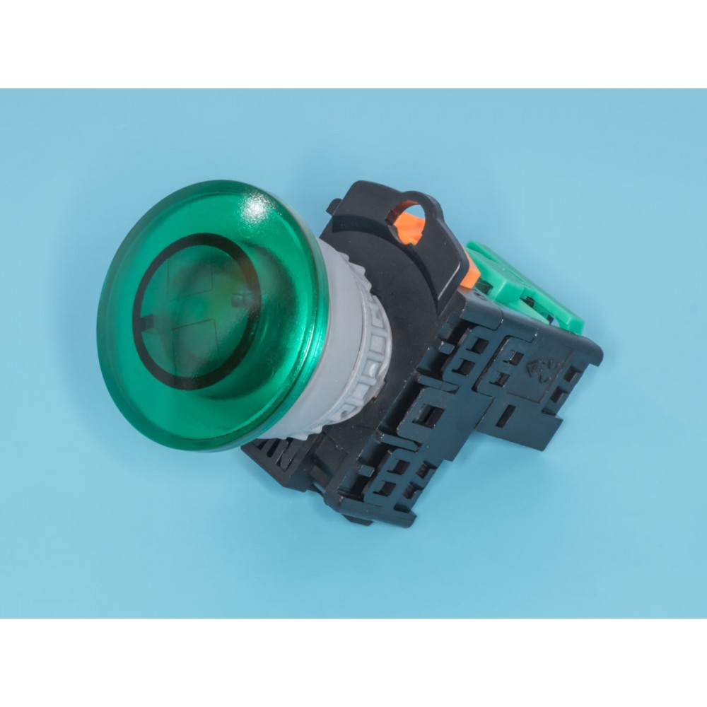 Кнопка управления грибовидная, с подсветкой, без фиксации, d 38 мм, НР, зеленая