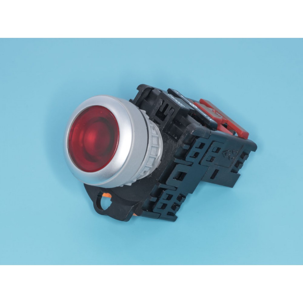 Кнопка управления плоская, с подсветкой, без фиксации, d 30 мм, НЗ, красная