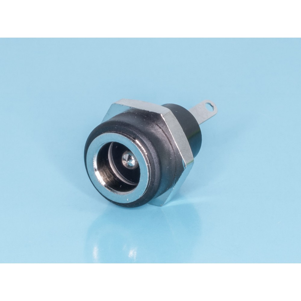 DJK-08B, Разъем питания штыревой 2,5мм, вилка на приборный блок, под гайку, мини