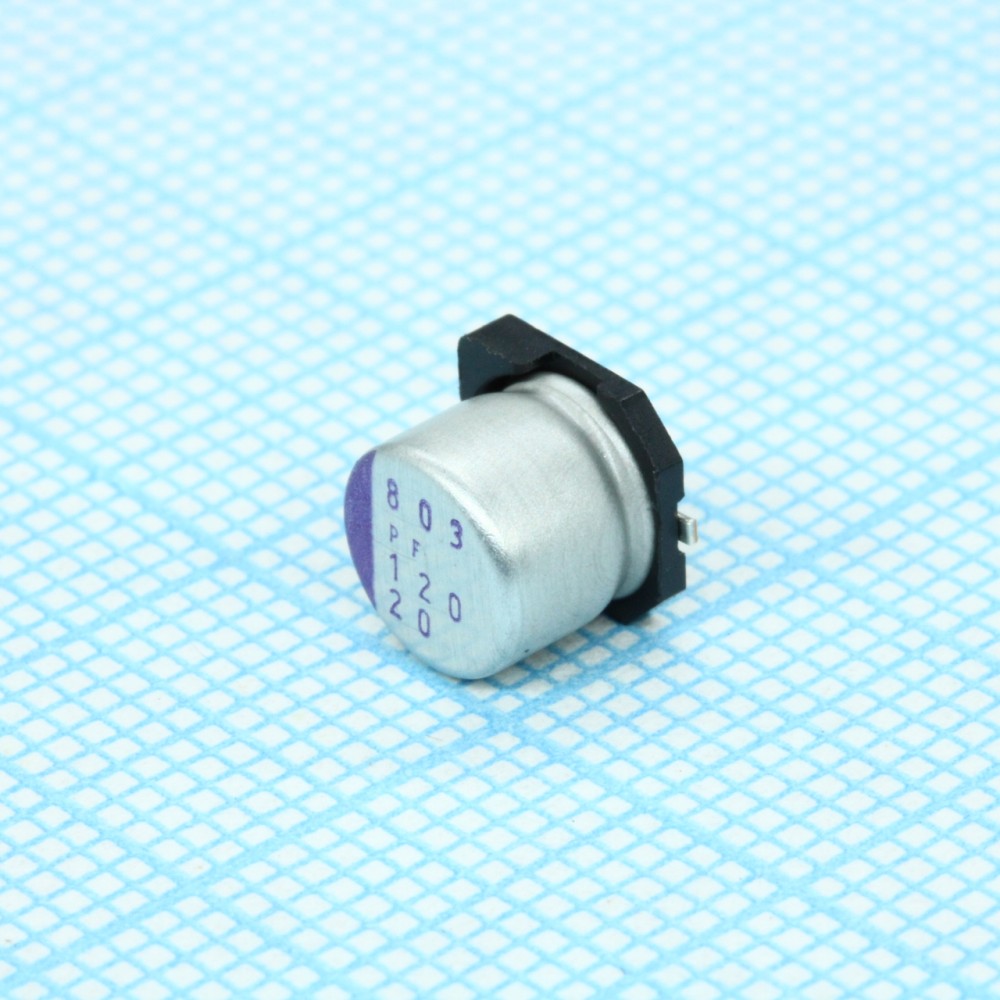 Конденсатор алюминиевый полимерный 120мкФ 20В ±20% (6.3х5.9мм) для поверхностного монтажа 0.05Ом 500мА 105°С лента на катушке