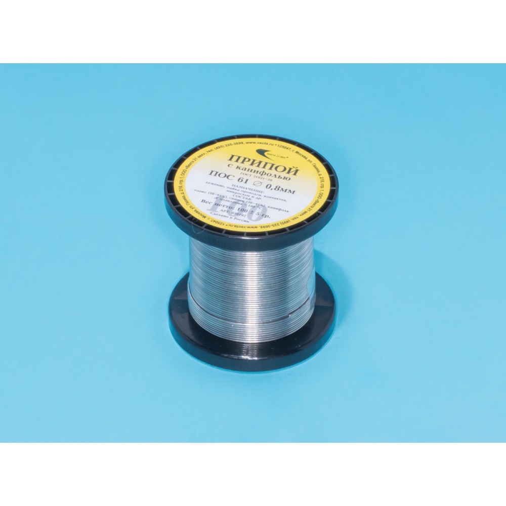 ПОС 61-T0.8А-0.1, Припой с канифолью, d 0,8мм, 100г