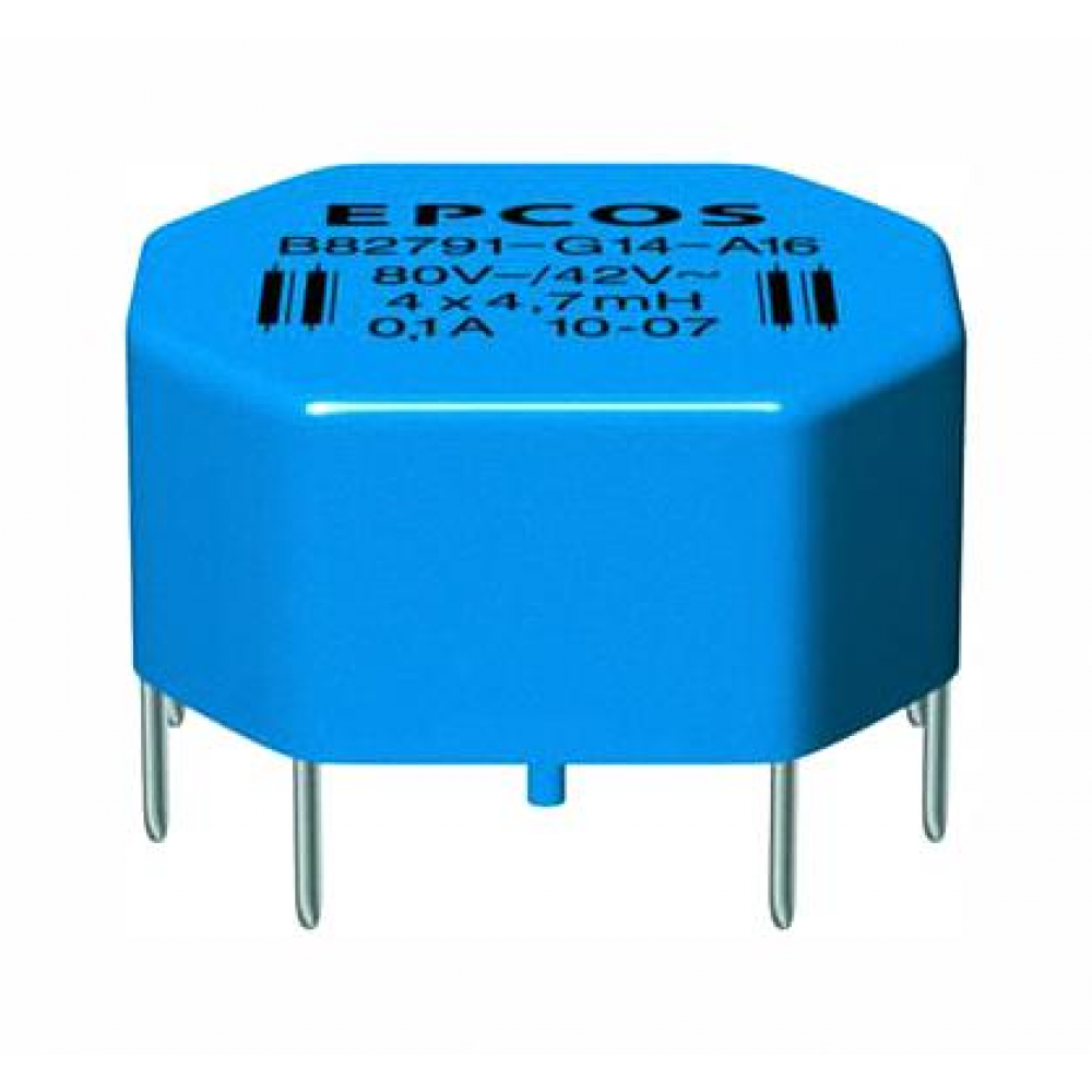 B82791G0014A016, Синфазный дроссель двухобмоточный 4700мкГн 10кГц 0.1A 0.85Ом монтаж в отверстие лоток