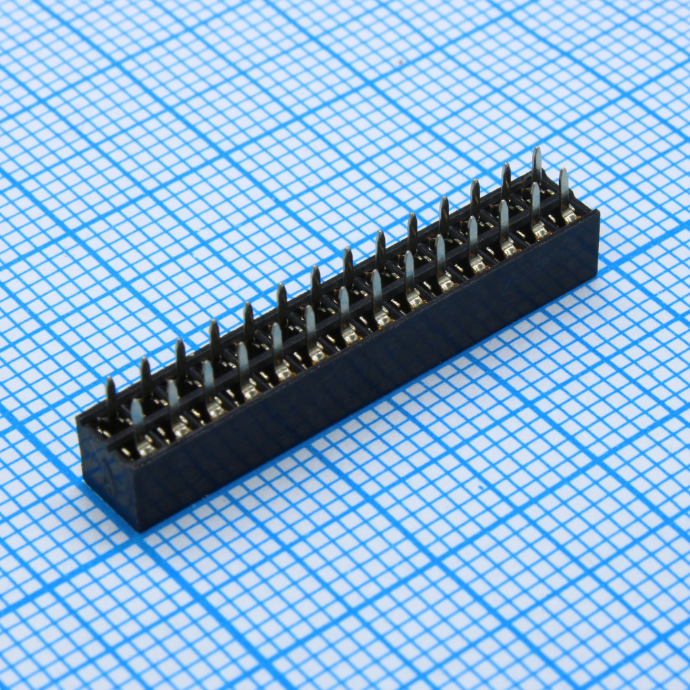 Гнездо на плату 2x14 конт., шаг 2.00мм, высота 4.3мм, позолоч.