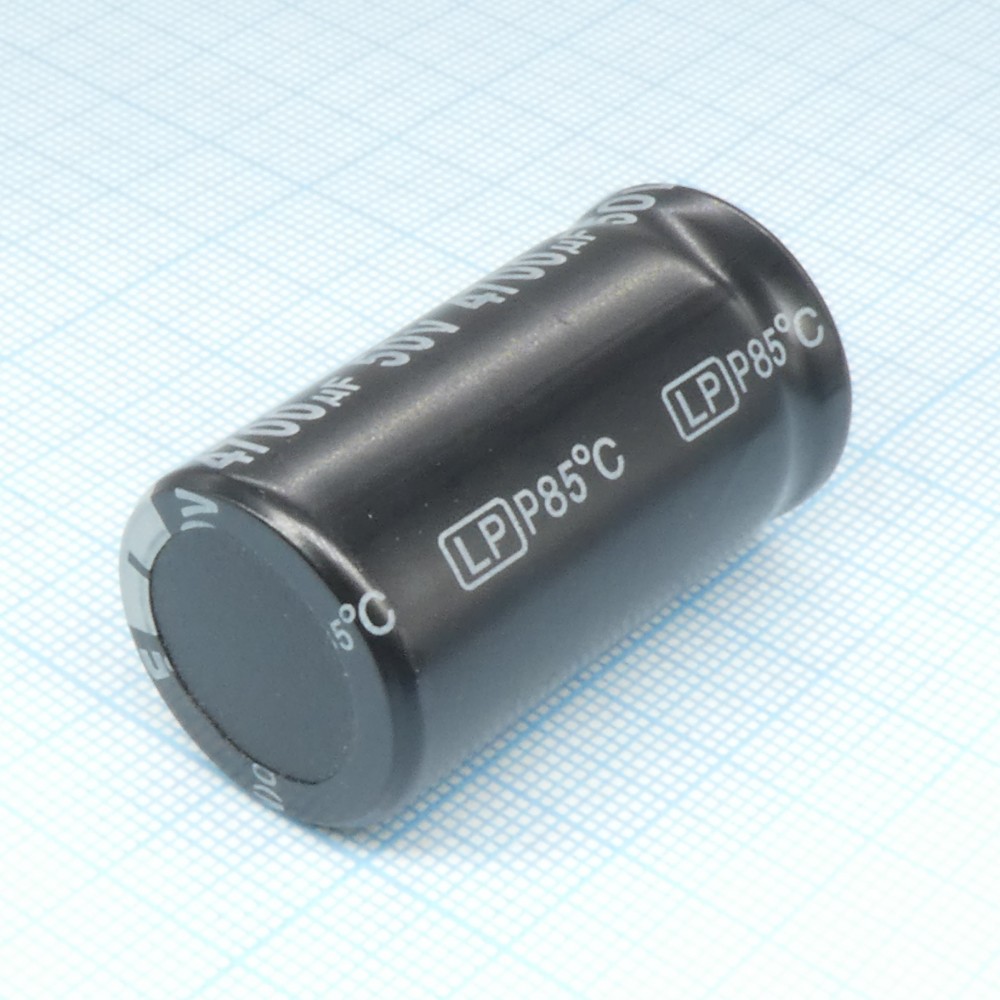 Конденсатор алюминиевый электролитический 50В 4700мкФ ±20%, 22*45 P:10мм защелкиваемые выводы 2400мА 2000ч -40...+105°С