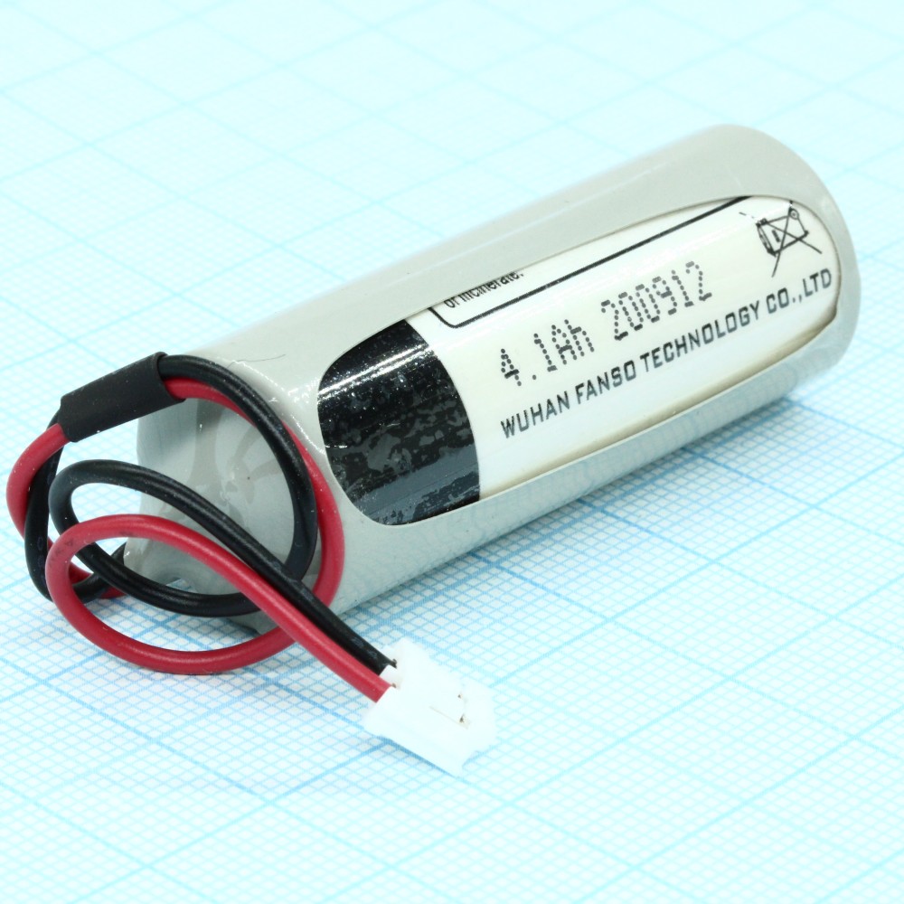 Li, SOCl2 батарея типоразмера A, 3.6В, 4.1Ач, разъем с проводами приварены к выводам, -55...85 °C