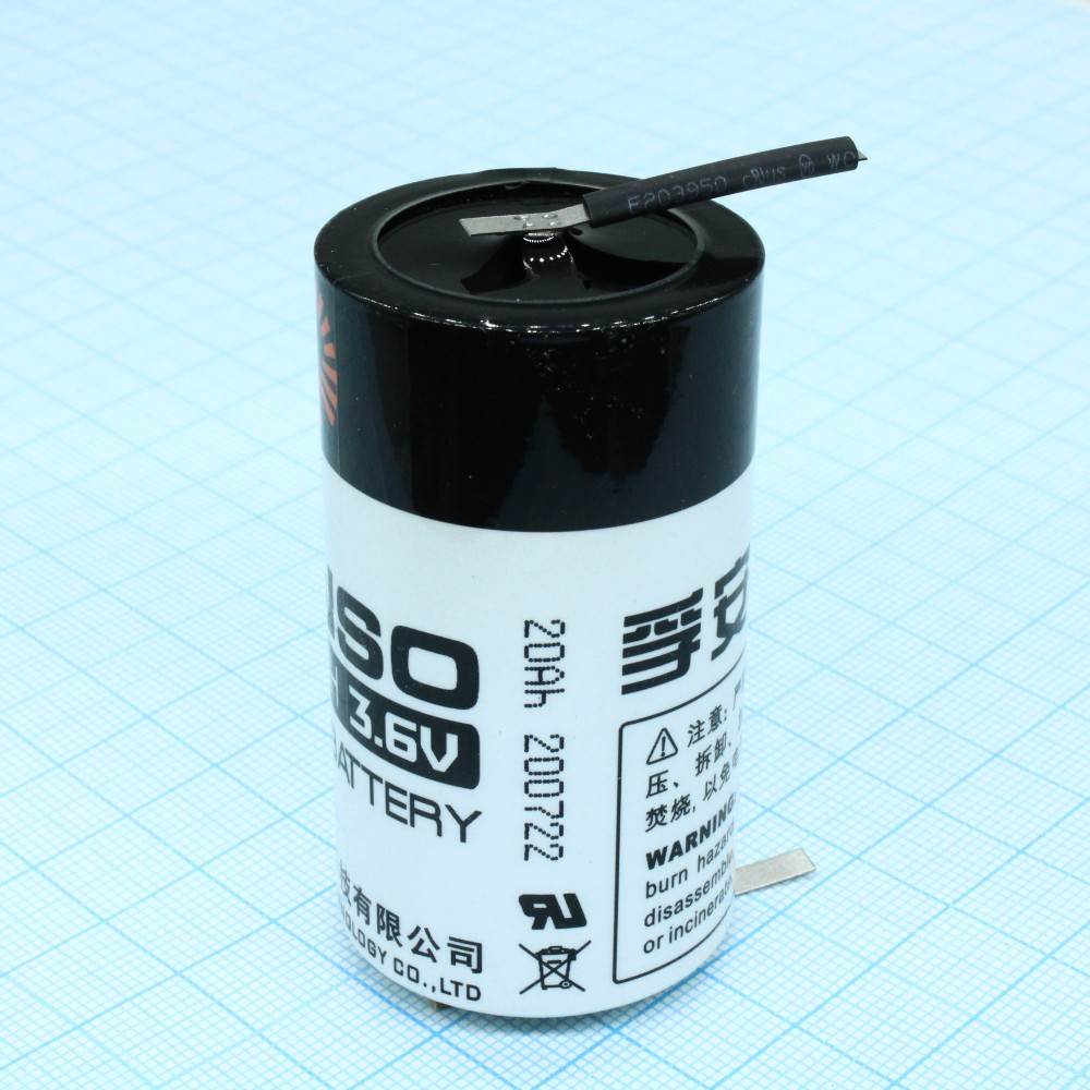 Li, SOCl2 батарея типоразмера D, 3.6 В, 19 Ач, плоские радиальные выводы, -55...85 °C