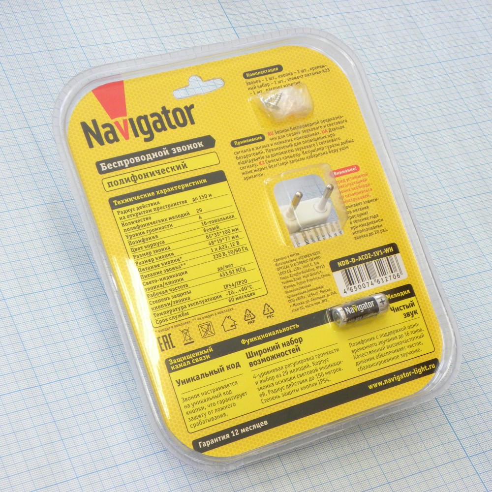 Описание Звонок беспроводной Navigator