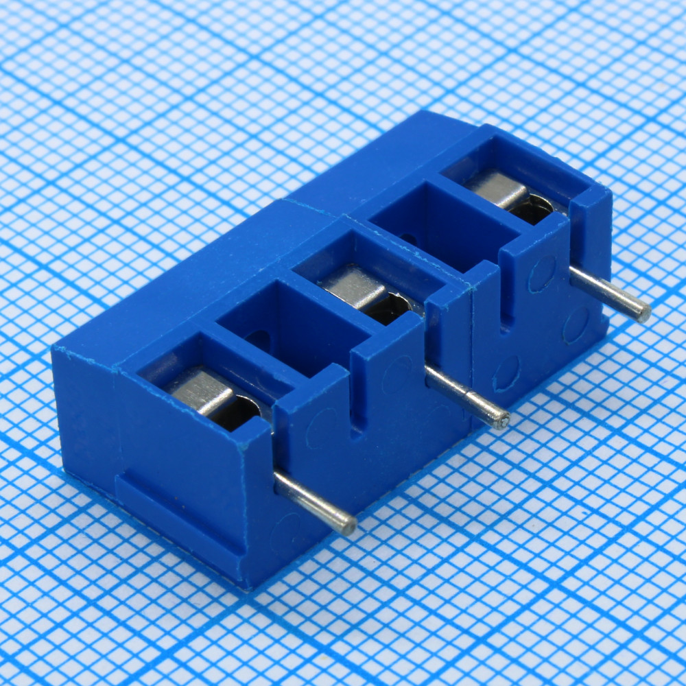 Винтовой клеммный блок c рельефной обоймой, 3 контакта шаг 5.0мм синий