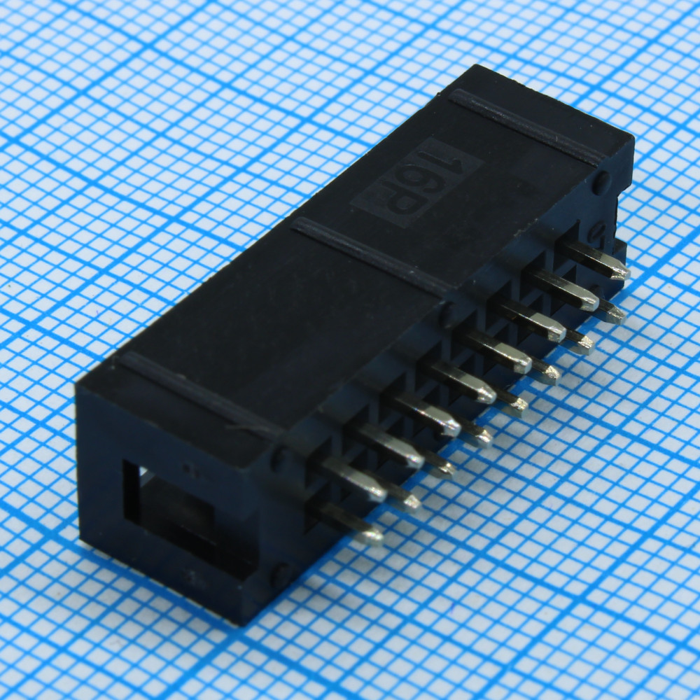 IDC разъем, вилка на плату прямая двухрядная 16pin(2x8)., шаг 2.54мм