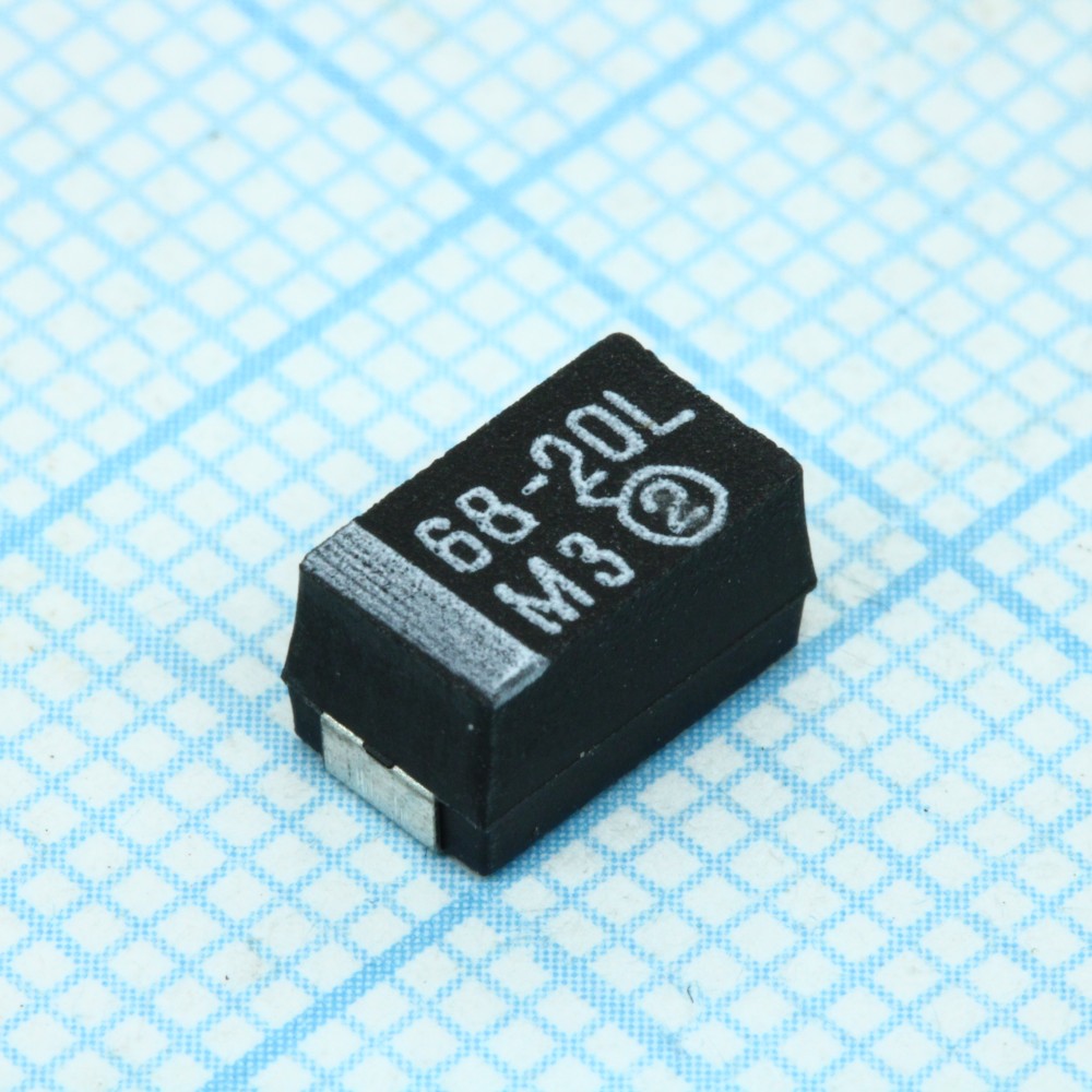 ЧИП-конденсатор танталовый твердотельный 68мкФ 20В типоразмер E ±10% (7.3х4.3х4мм) выводы внутрь SMD 7343-43 0.6Ом 125°С лента на катушке