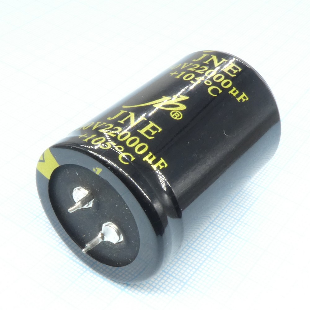 JNE — это серия электролитических конденсаторов c выводами snap in. Конденсаторы имеют базовые параметры рабочего температурного диапазона от -40℃ до +105℃ и время наработки на отказ в 2000 часов.