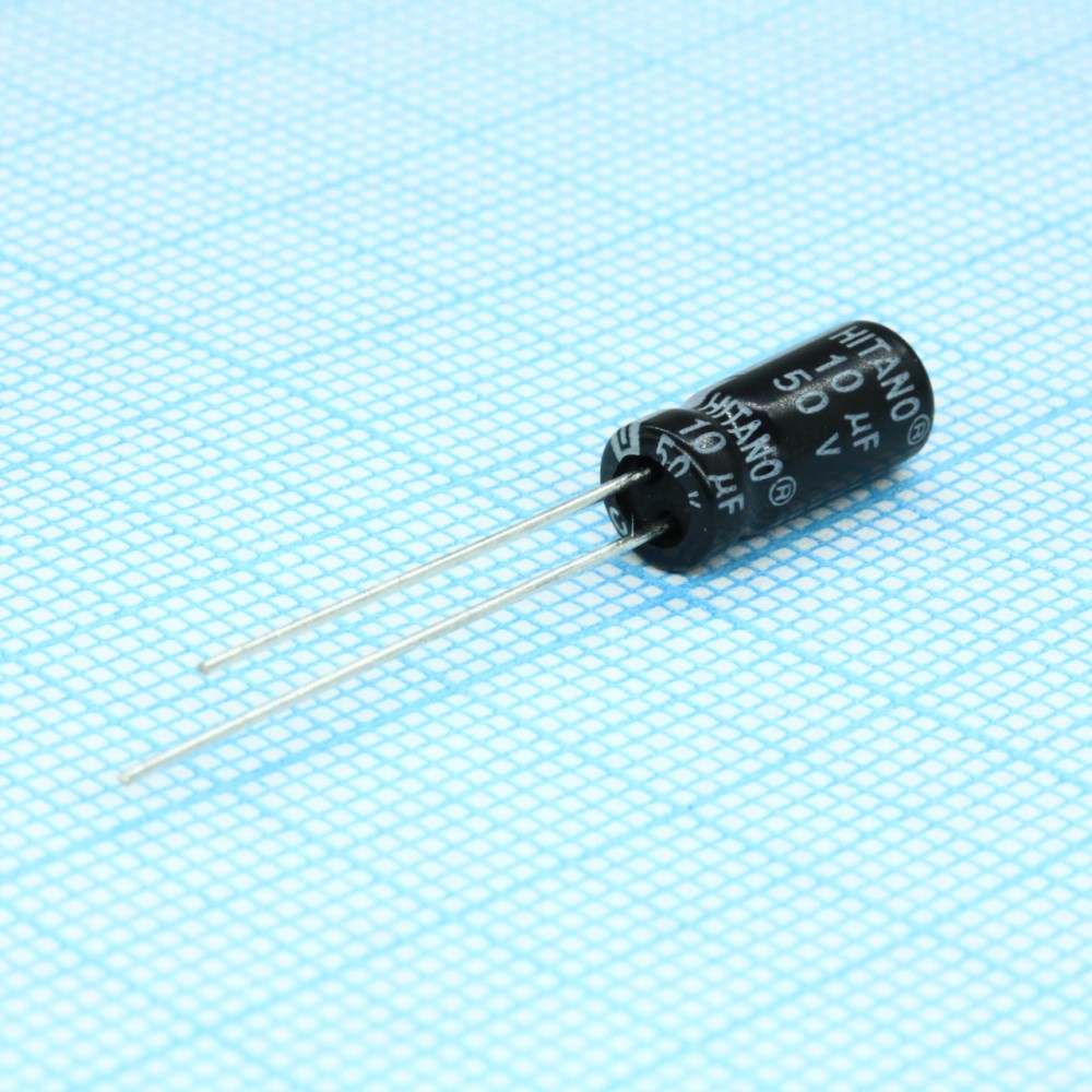 Конденсатор алюминиевый электролитический 10мкФ 50В ±20% (5 X 11мм) радиальные выводы 2мм 50мА 2000час 105°С россыпь