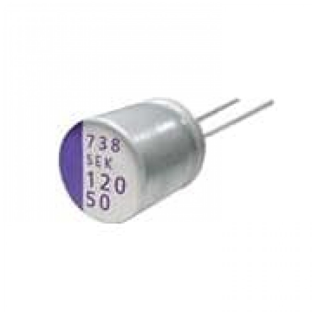 50SEK120M, Конденсатор алюминиеый электролитический SEK-серия 50В 120мкФ шаг выводов 5мм ±20 % радиальный полимерный