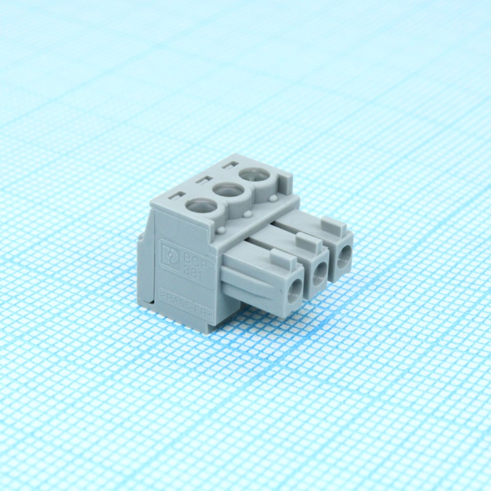 BCP-381- 3 G, Разъемы для печатной платы, номинальный ток: 8 A, расчетное напряжение (III/2): 160 В, номинальное сечение: 1,5 мм?, полюсов: 3, размер шага: 3,81 мм, тип подключения: Винтовой зажим с натяжной гильзой, цвет: сигнальный серый