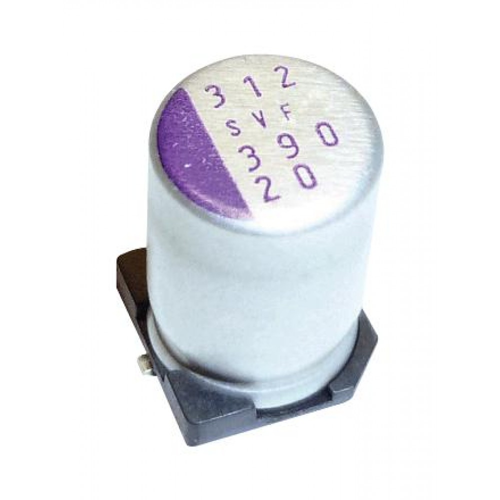 50SVF39M, Конденсатор алюминиевый полимерный 39мкФ 50В ±20% (8 X 11.9мм) для поверхностного монтажа 0.025Ом 1200мА 1000час 125°С лента на катушке