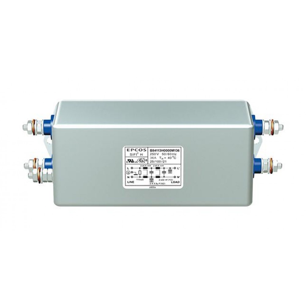 B84113H0000M110, Фильтр линии питания двухпроводный 50Гц/60Гц 10A 250В резьбовая шпилька фланцевое крепление медицинского применения