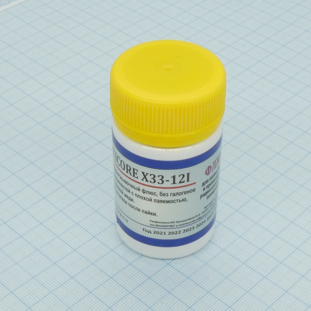 Флюс Multicore X33-12i безотмыв.(30мл), Безотмывочный, без галогенов, для пайки поверхностей с плохой паяемостью, в т.ч. по окисленной меди. Не оставляет остатков после пайки