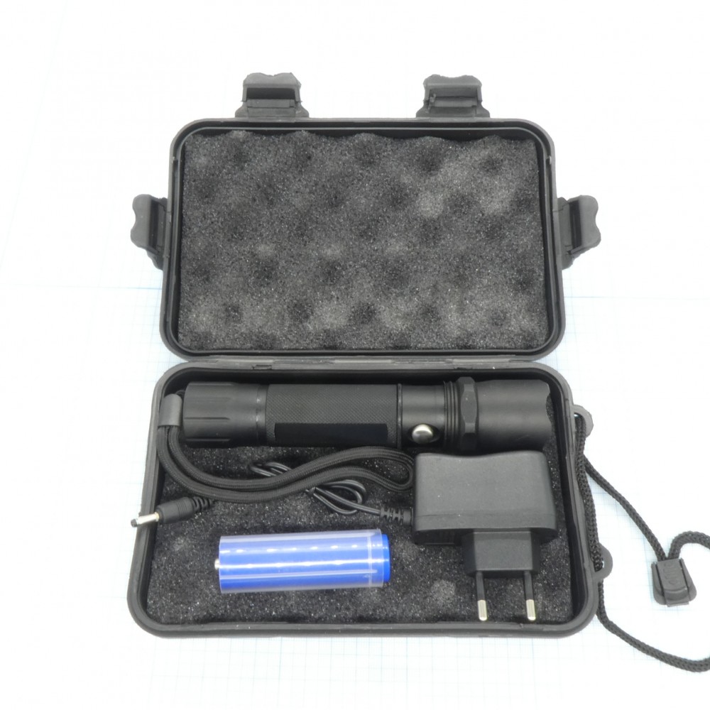 Доставка Фонарь аккум.ручной UltraFlash E145 , (акк.1х18650) 1св/д 1Вт (80Лм), фокусировка, 3 режима, металлический, черный, бокс, з/у 220В