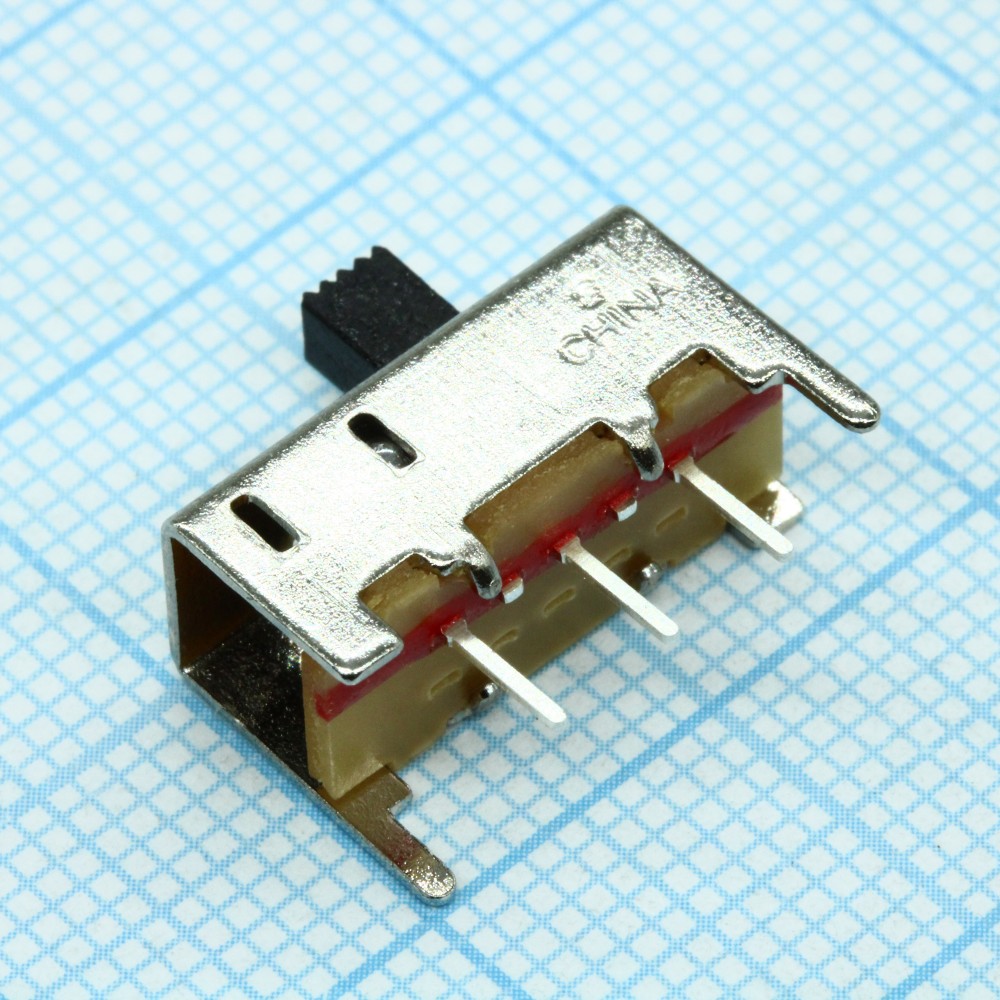 Переключатель движковый вертикальный (ON-ON) 0.3A 125VAC, высота движка 4.5мм, 15000 циклов, монтаж в отверстие