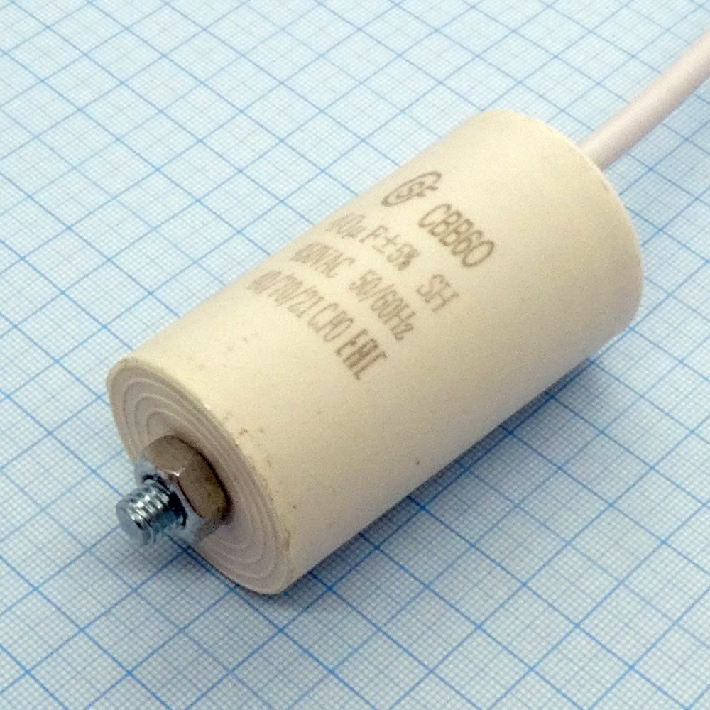 CBB60 450V 40uF ±5% провод + болт, Конденсатор пусковой 40*74мм / рабочий, металлизированный, полипропиленовый в герметизированном цилиндрическом корпусе, с гибкими выводами + крепление - болт.