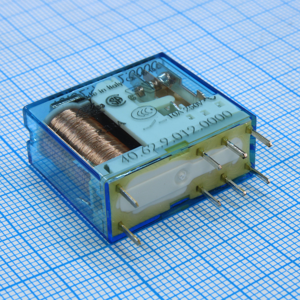 Доставка 40.62.9.012.0000 , Миниатюрное универсальное электромеханическое реле; монтаж на печатную плату или в розетку; выводы с шагом 5мм; 2CO 10A; контакты AgNi; катушка 12В DC; степень защиты RTII