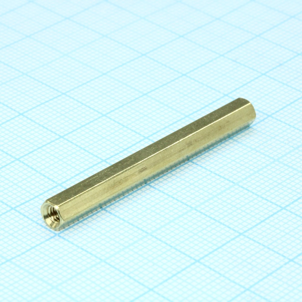H-L4500-0600-5-03-2N, Стойка латунная никелированная для печатной платы, шестигранная, М3, 45мм, отверстие-отверстие