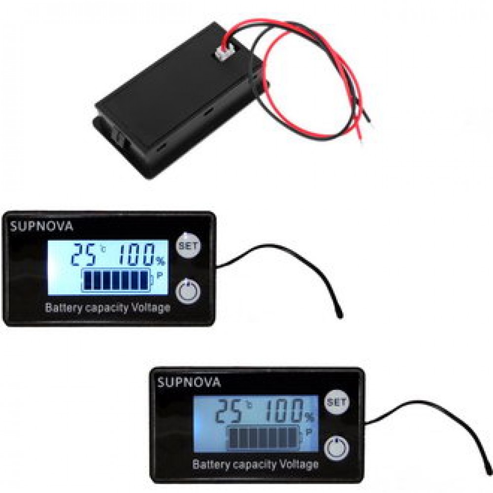 Цифровой LCD измеритель заряда батареи DC 8-100В, JX-6133, для кислотных и литиевых акб, есть режим сигнализации