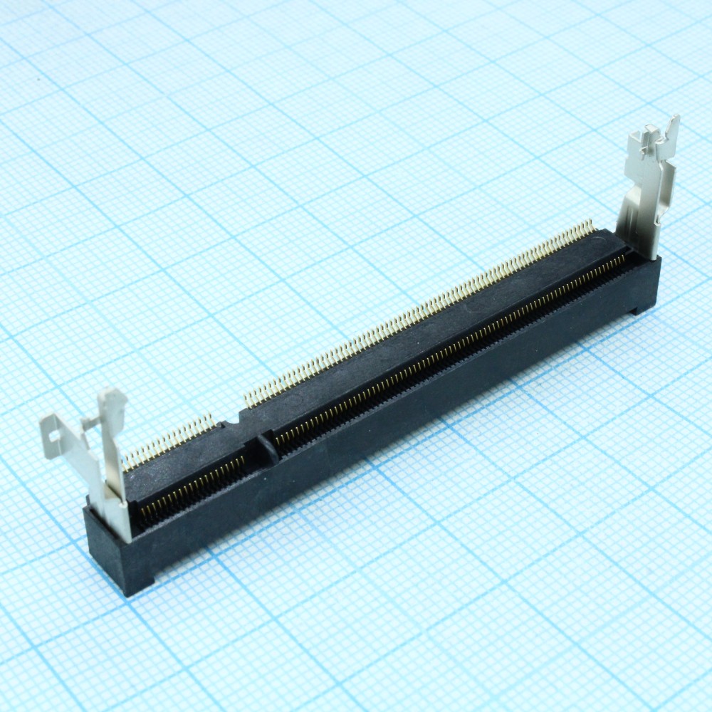 Разъем DDR, DIMM, Шаг: 0.6 мм; Контакты: 200; Монтаж: поверхностный; Расположение: угловое