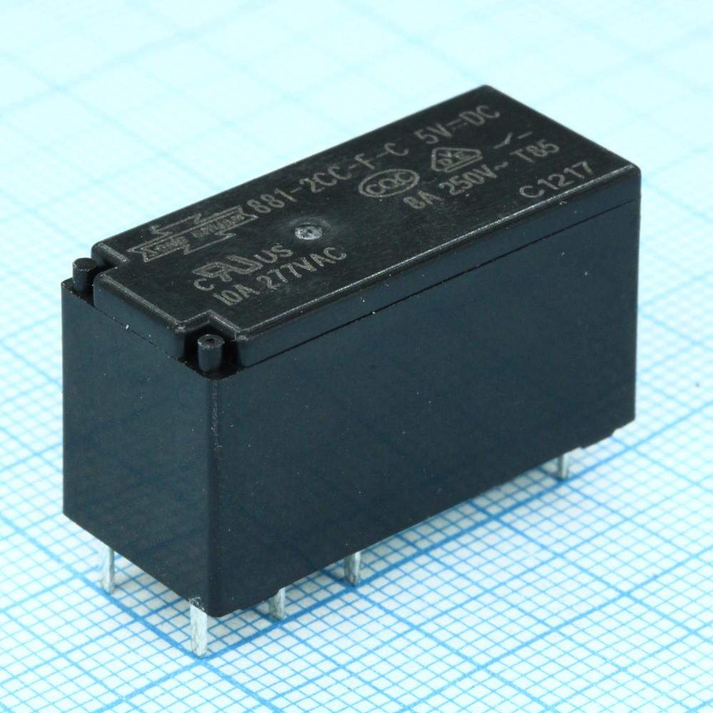 881-2CC-F-C 05VDC, Реле промежуточное катушка 5В, 0.4Вт контакты 8A 240В переменного тока, 2 перекидных, размер (LxWxH) мм: 29.0х12.7х15.7. мотнаж в отверстие