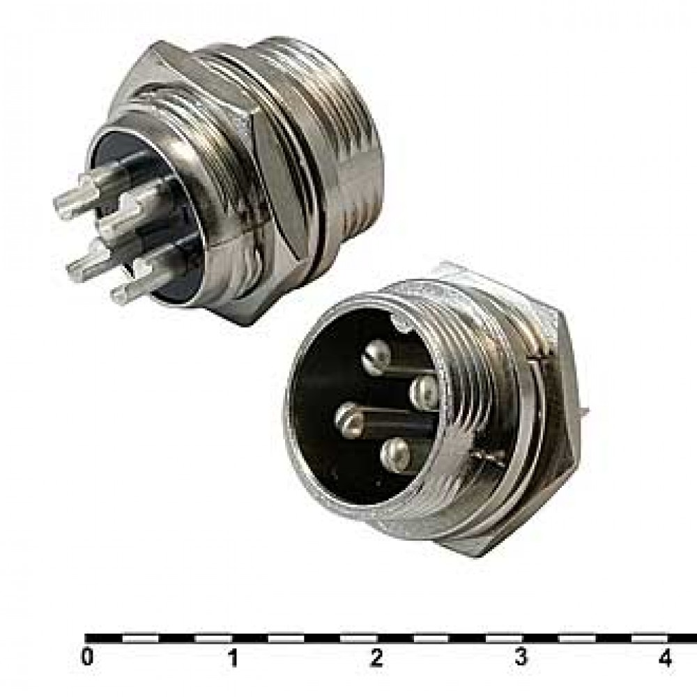 GX16M-4B, Разъём цилиндрический малогабаритный 4 контакта, вилка на блок, IP55