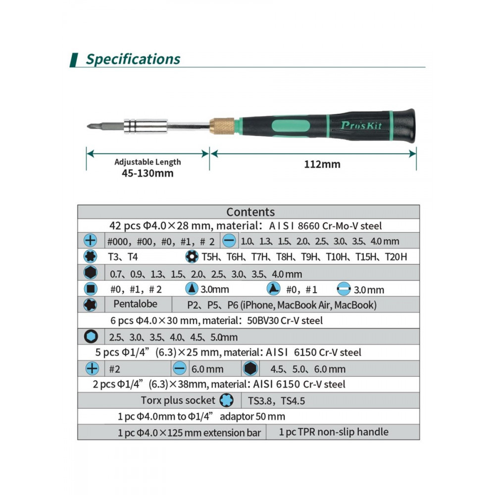 SD-9828, Отвертка со сменными битами и насадками (58шт)