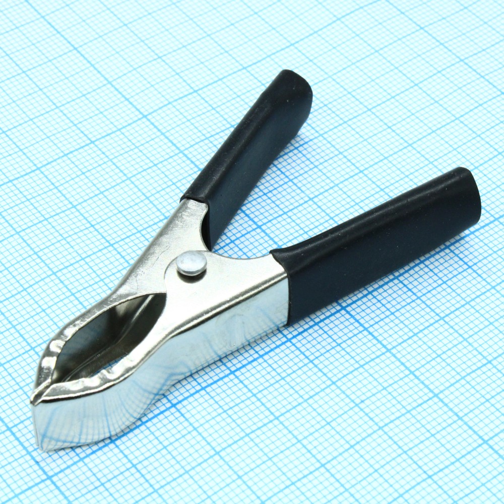 8-0039 BLACK, Зажим "Крокодил" с изолятором (черный), 35А, 75мм