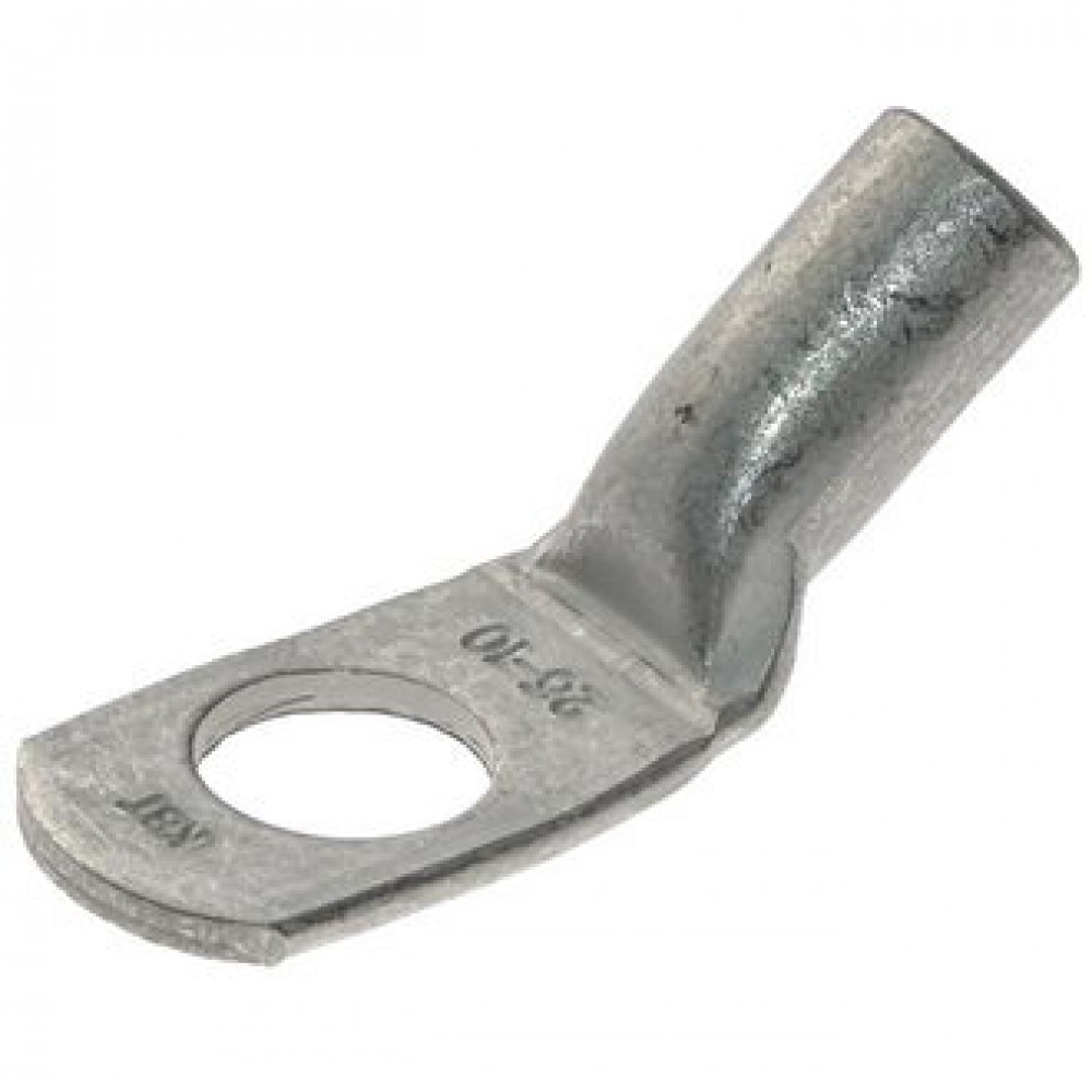 Наконечник кабельный медный луженый стандарта «КВТ» кольцевой М10 с хвостовиком под 45° для опрессовки проводов сечением 25 мм2