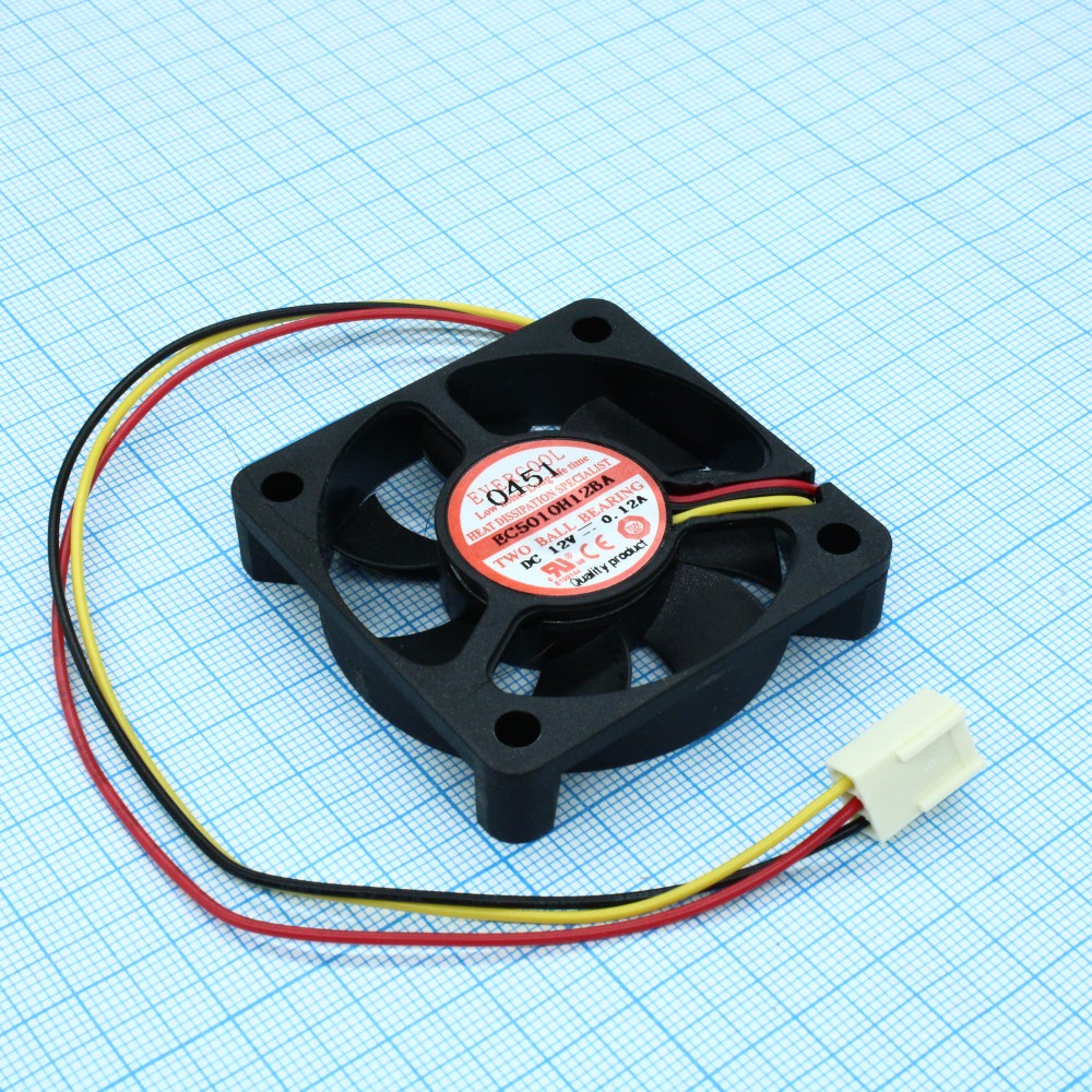 EC5010H12BA, Вентилятор 12В, 50х50х10мм, подшипник качения, 5000 об/мин 3 вывода