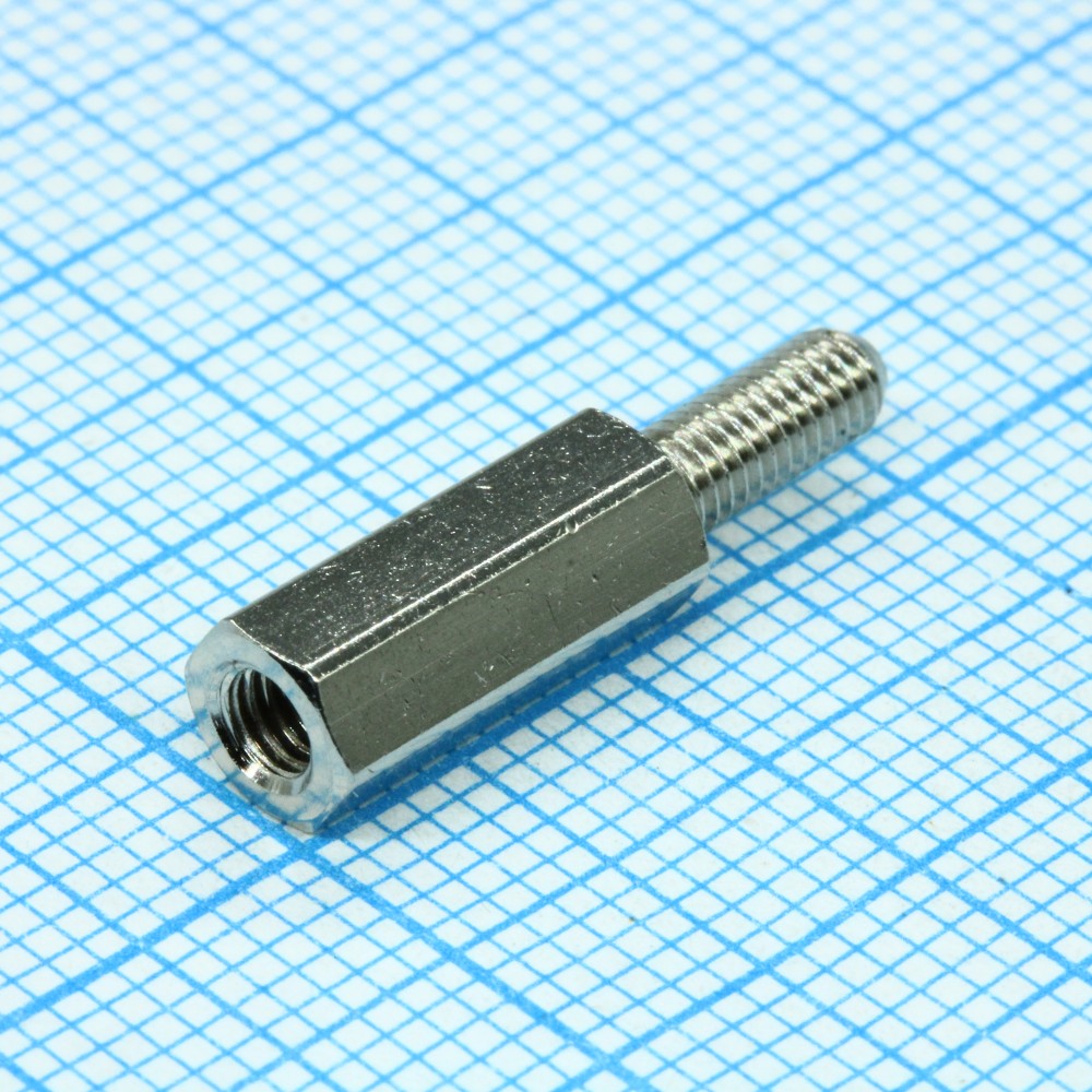 Стойка латунная никелированная для печатной платы, шестигранная, М3, 12мм, отверстие-винт