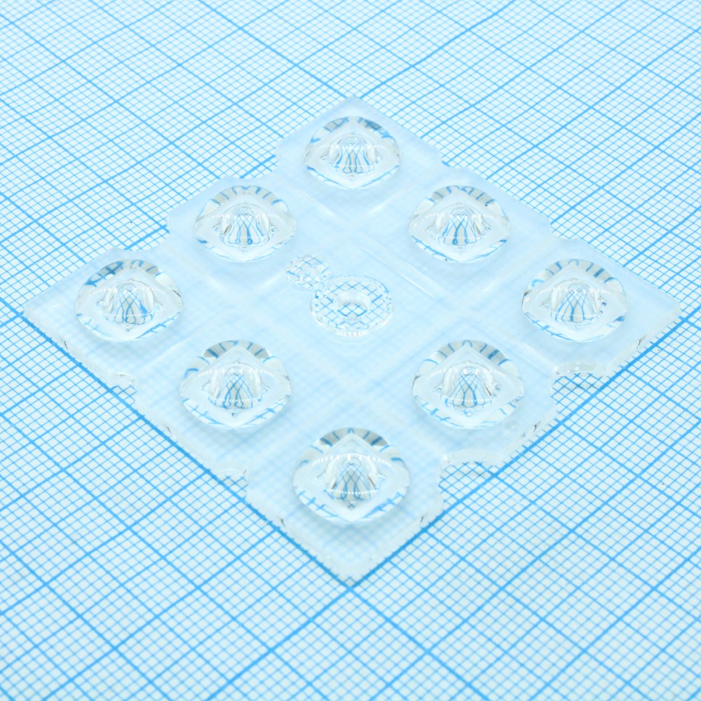 Групповая квадратная линза с широким углом, 50х50мм для 8 LED размером до 5050