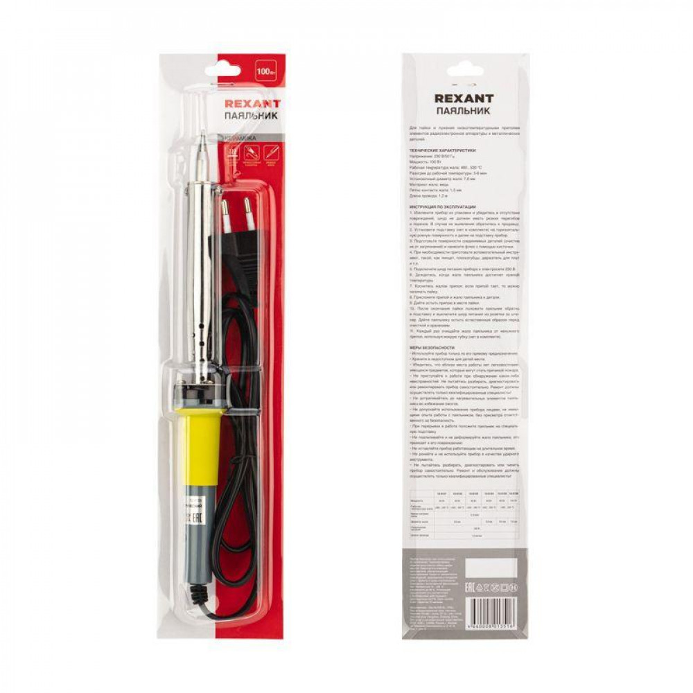 Паяльник с керамическим нагревателем, долговечное жало 100 Вт REXANT предназначен для ручного монтажа радиоэлементов.