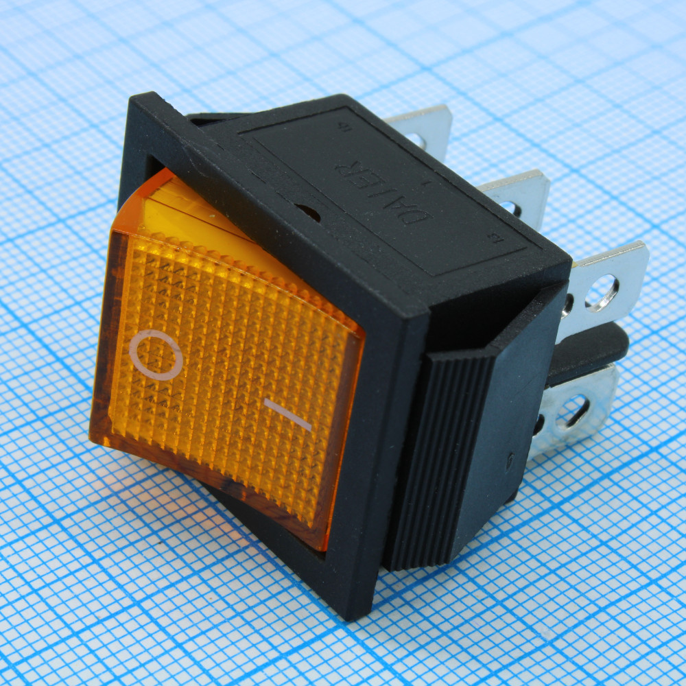 Доставка RWB-506 желтый , Выключатель клавишный с подсветкой ON-ON (6c) 15А 250В