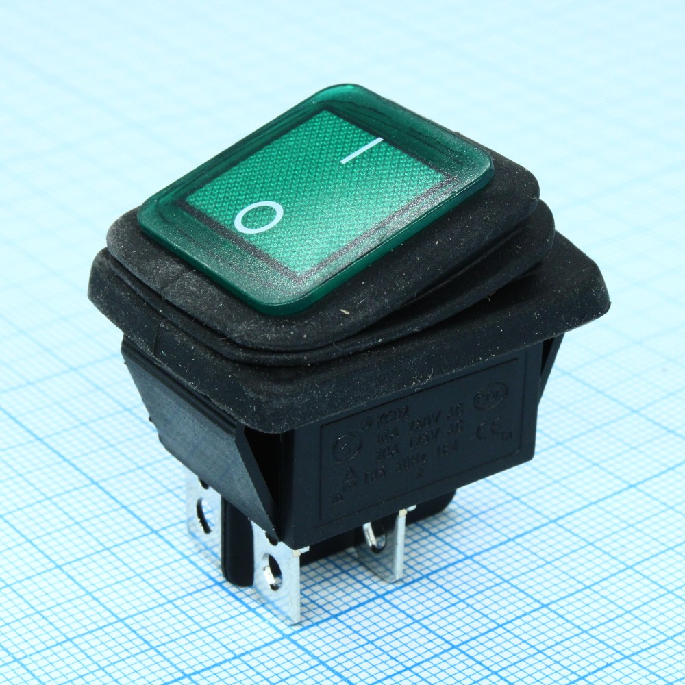 Доставка RWB-507 зеленый , Выключатель клавишный с подсветкой и влагозащитой IP54 ON-OFF (4c) 15А 250В