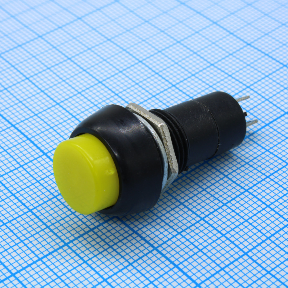PBS-11B желтый, Кнопка без фиксации 1А 250В OFF-(ON) круглая М12