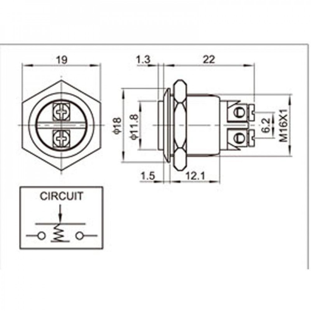 Кнопка антивандальная d16 3A 250B (2c) (ON)-OFF выпуклая